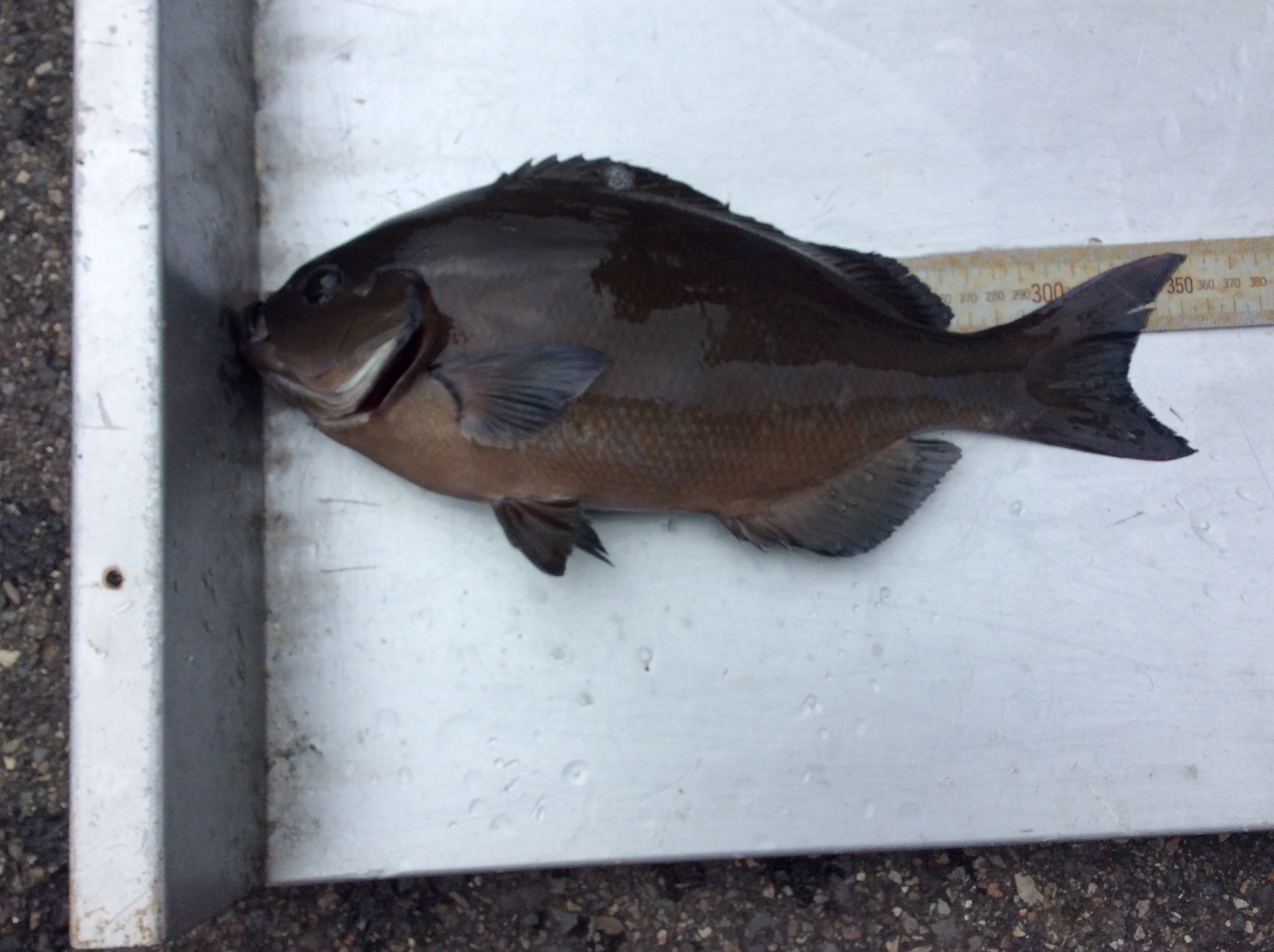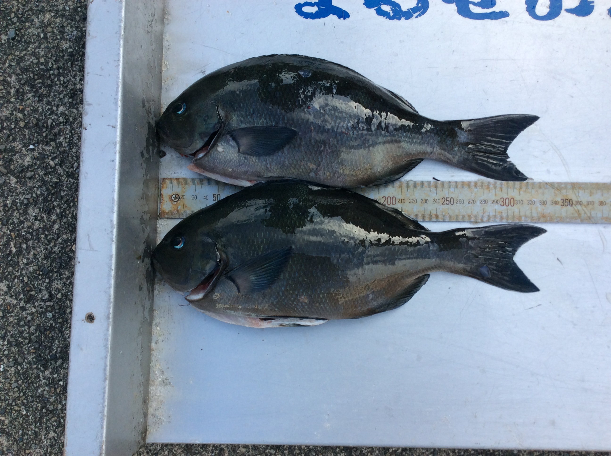 | | グレ 30p〜33p 3匹 | 釣 人 :寝屋川市 小林 和夫さん エ サ : オキアミ 釣 方 : フカセ釣り | |