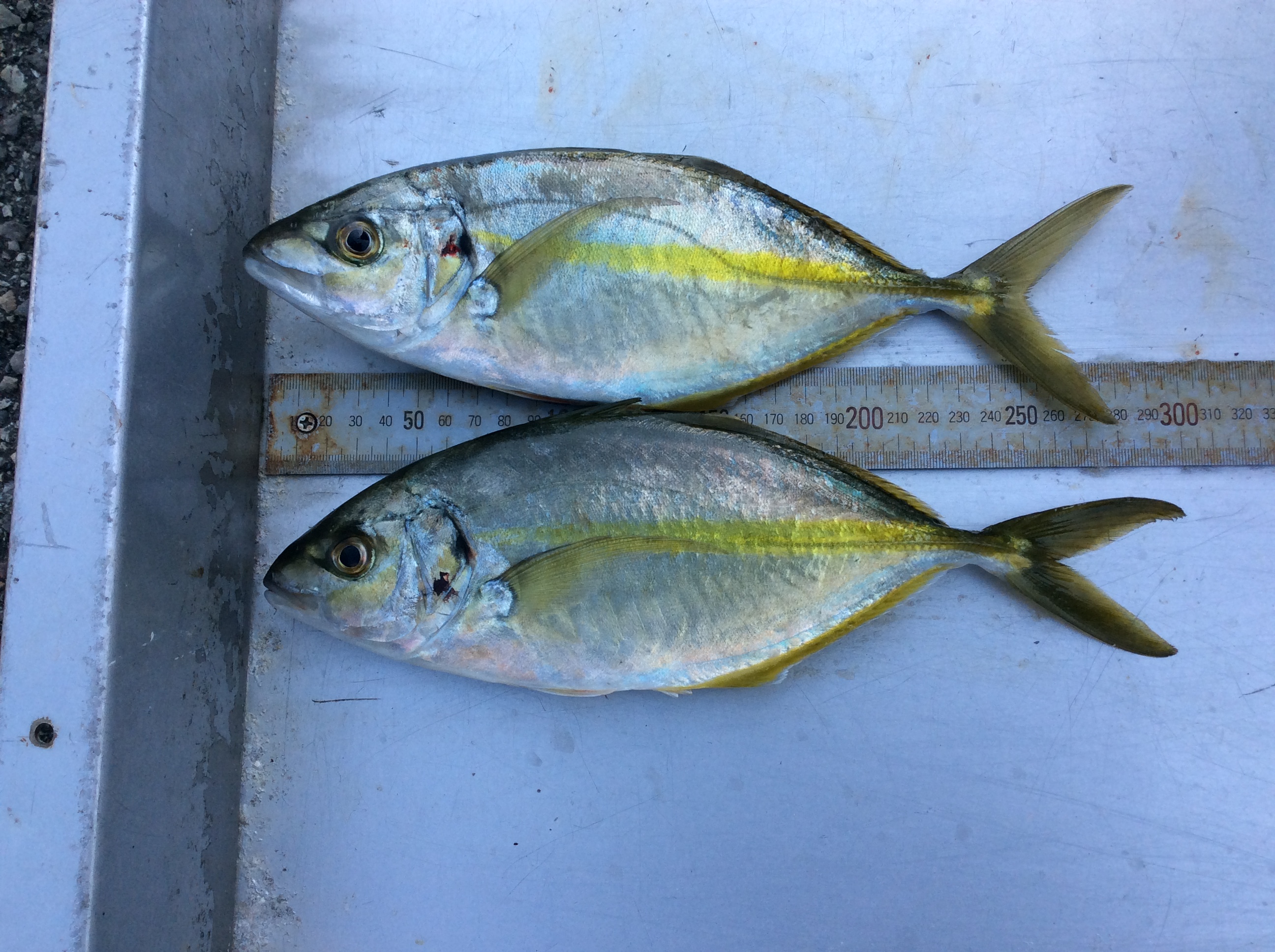 | | シマアジ 28p〜31p 2匹 | 釣 人 :豊田市 宮嶋さん エ サ : オキアミ 釣 方 : かご釣り | |