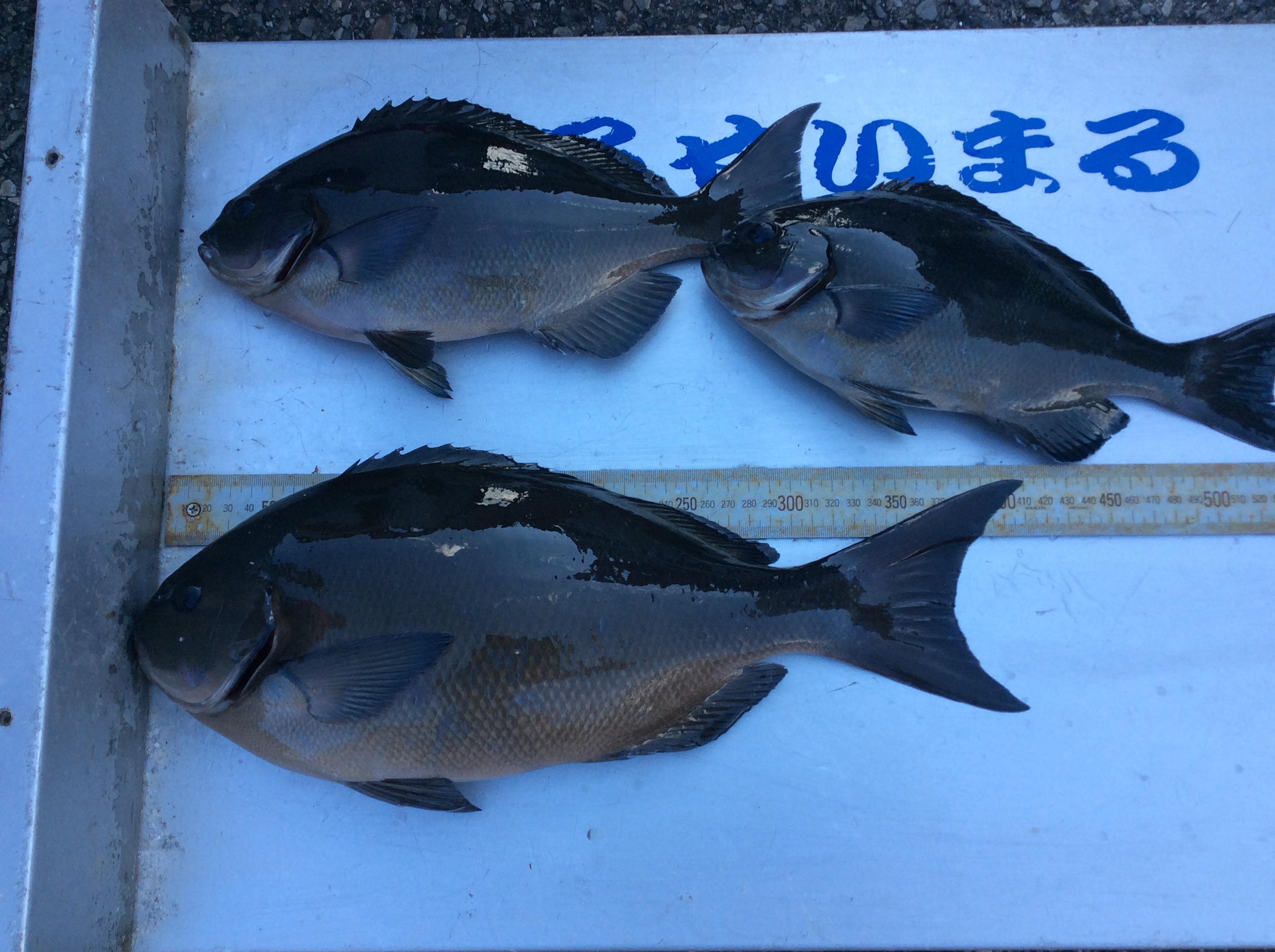 | | グレ 36p〜41p 2匹 | 釣 人 :八尾市 足立 信之さん エ サ : ボイル 釣 方 : フカセ釣り | |