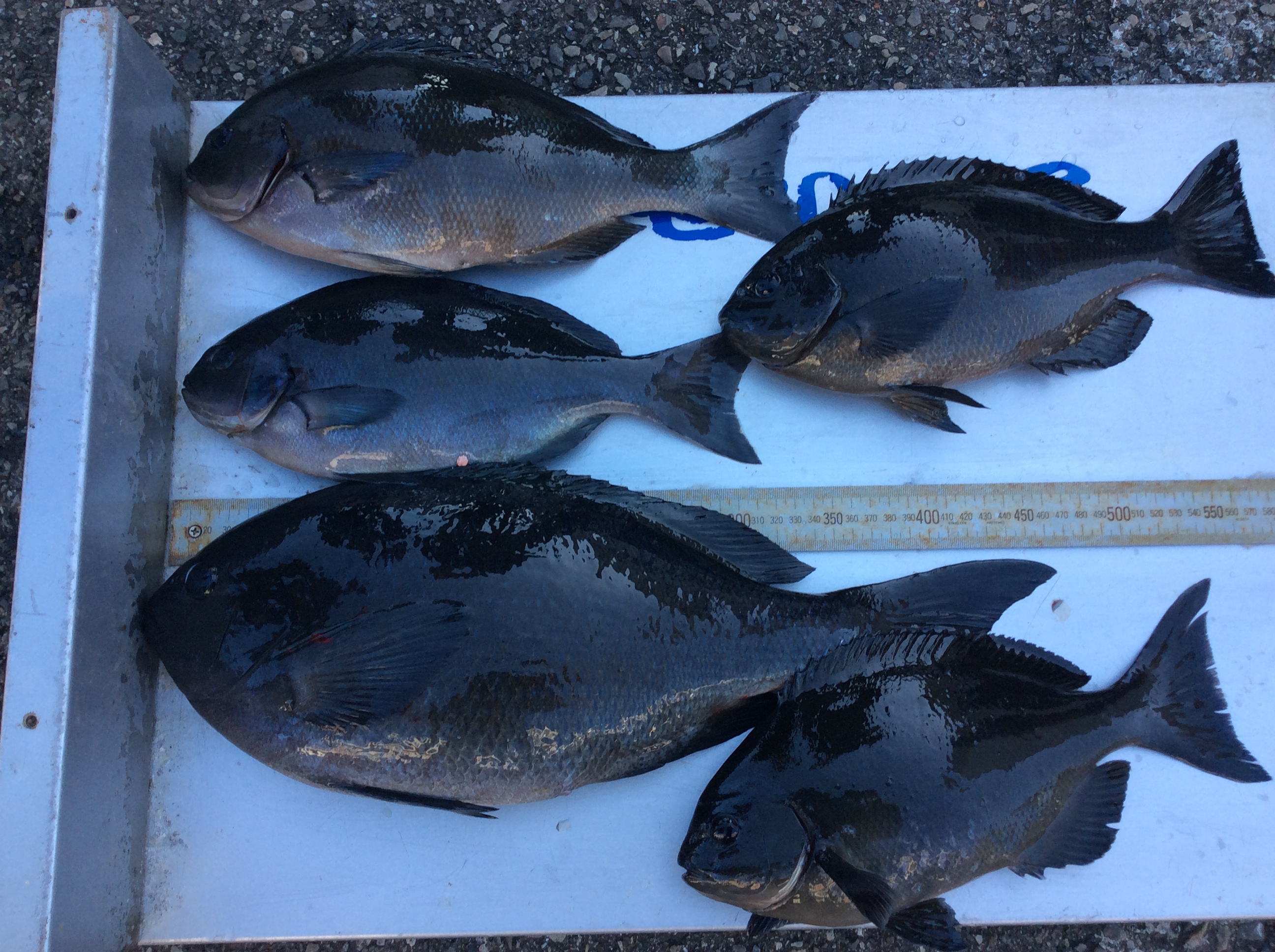 | | グレ 32p〜47p 5匹 他の方は 大型のバラシが 数回ありました | 釣 人 :十津川村 田花 敏郎さん エ サ : オキアミ 釣 方 : フカセ釣り | |