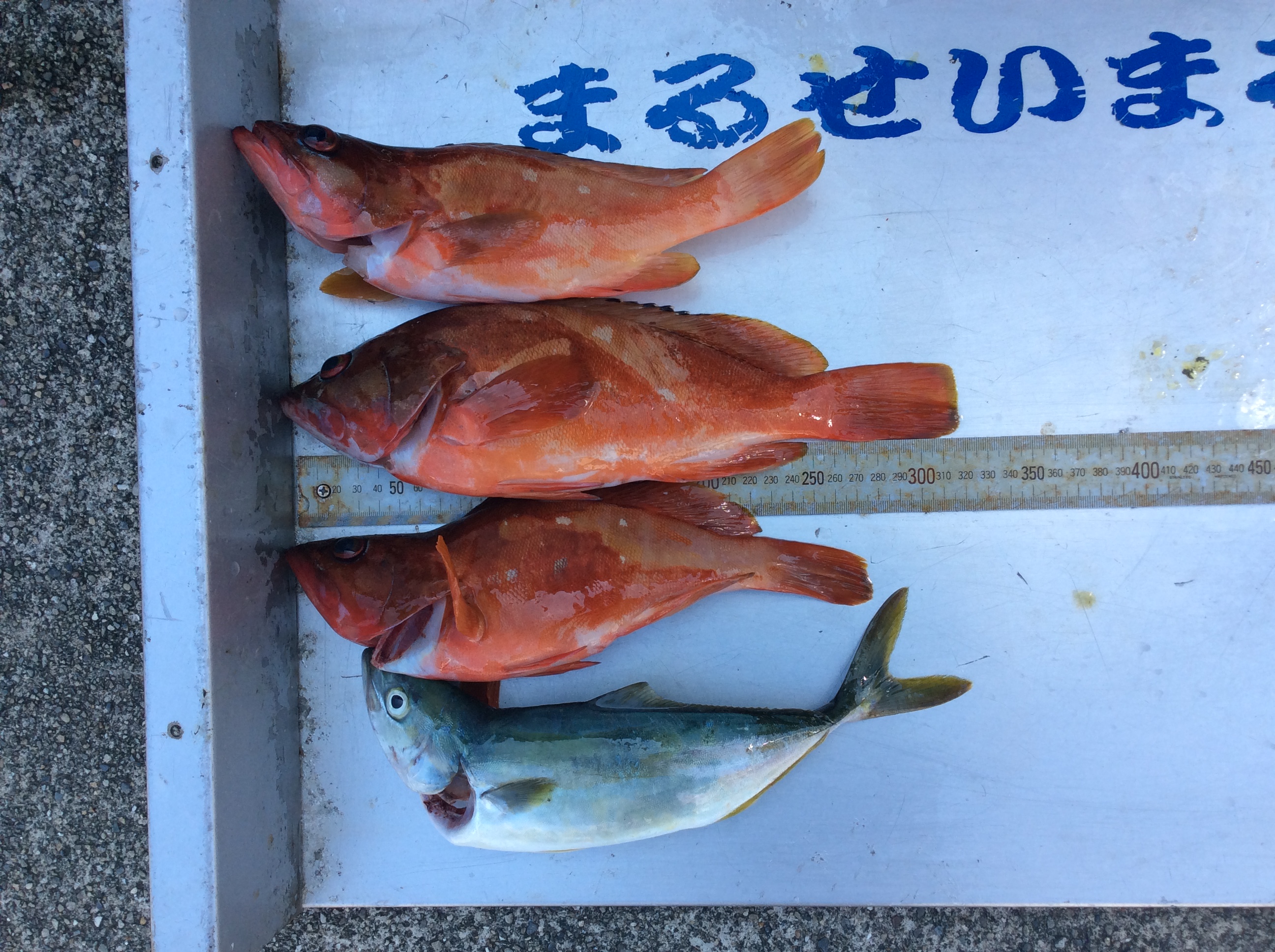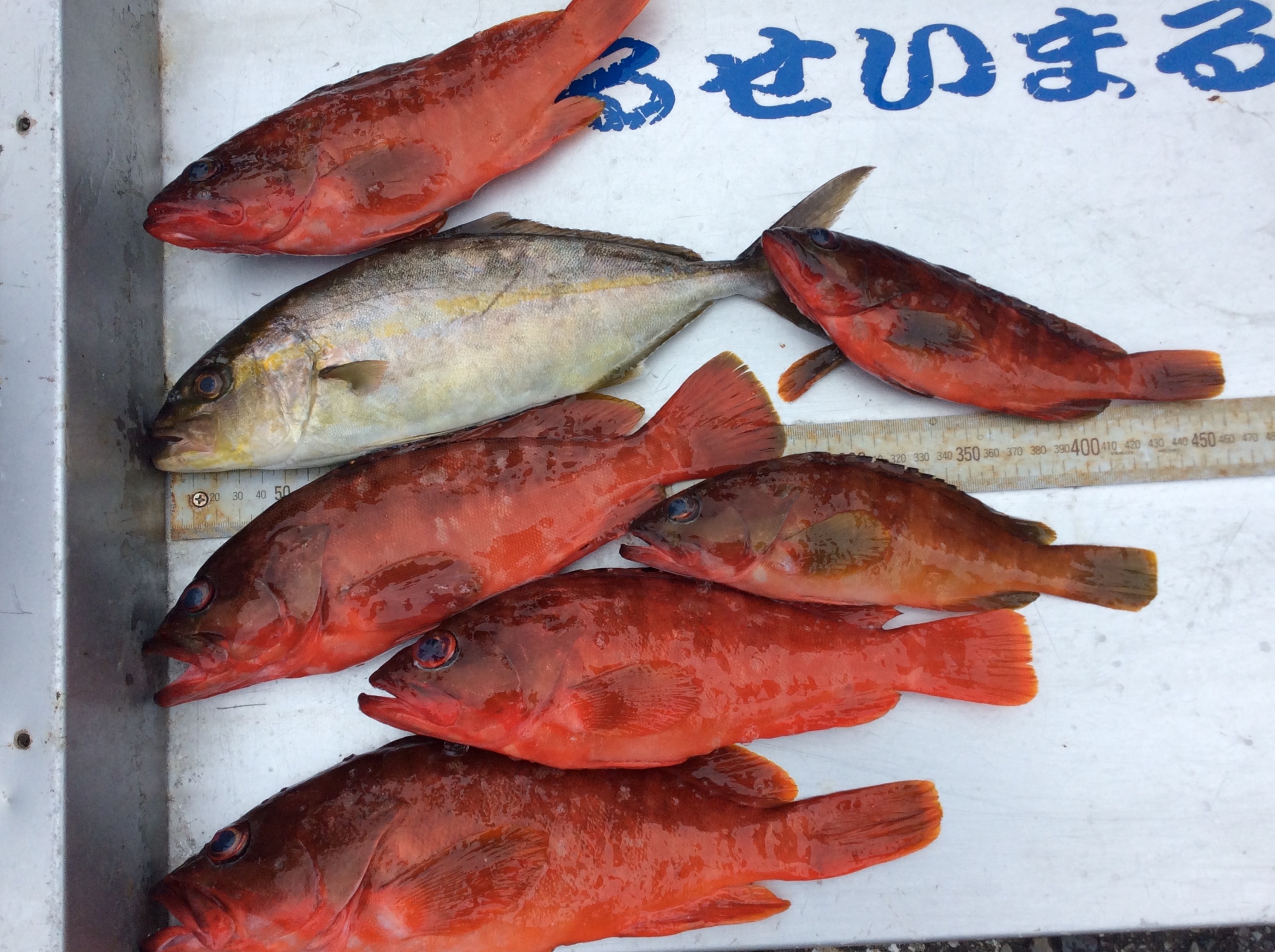 | | アカハタ 30p〜33p 3匹 ツ゚バス 30p 1匹 | 釣 人 : 堺市 松本 賢治さん エ サ : 釣 方 : ルアー釣り | |