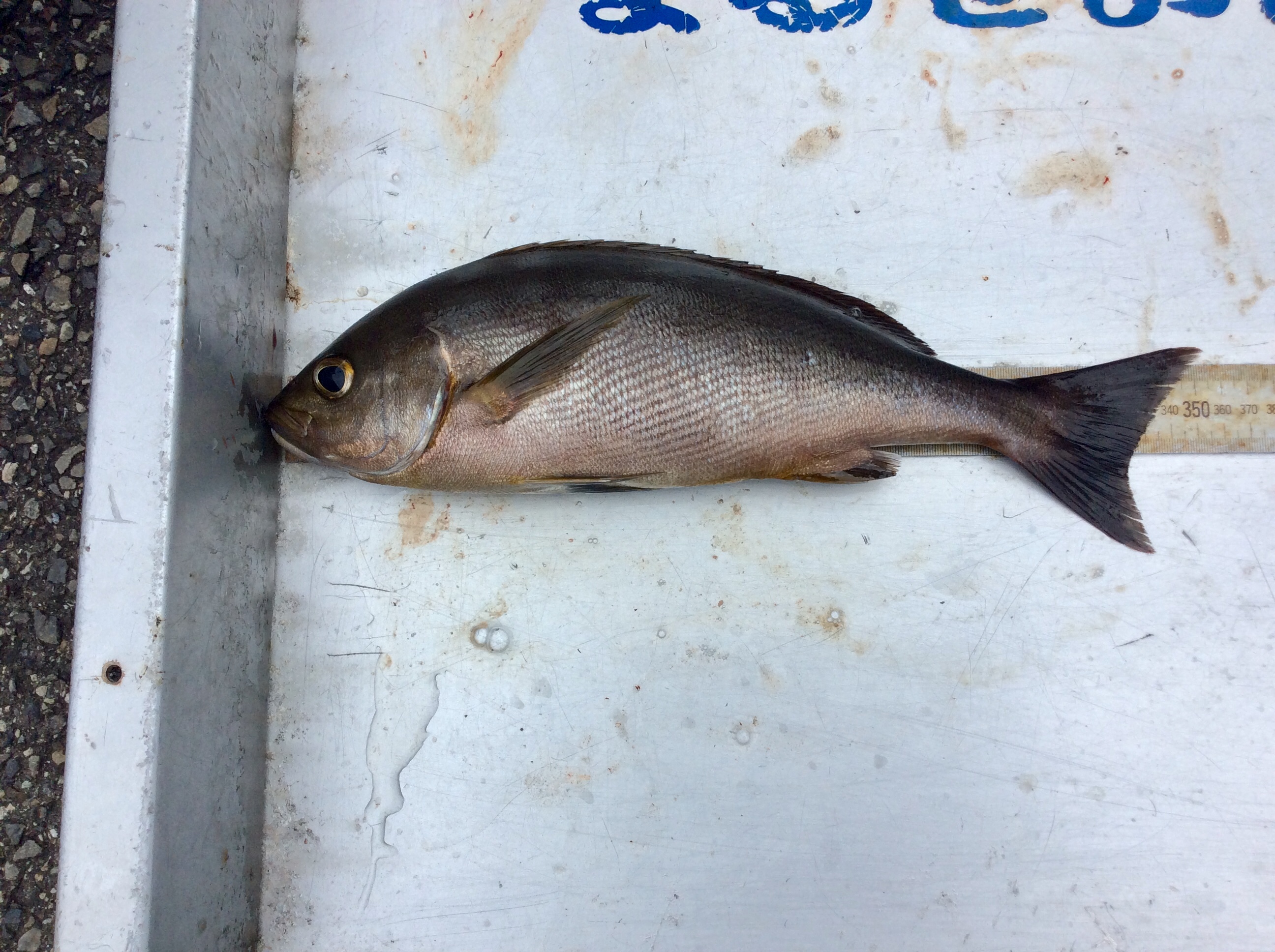 | | イサギ 35p 1匹 | 釣 人 :松阪市 奥野 美久さん エ サ : オキアミ 釣 方 : フカセ釣り | |