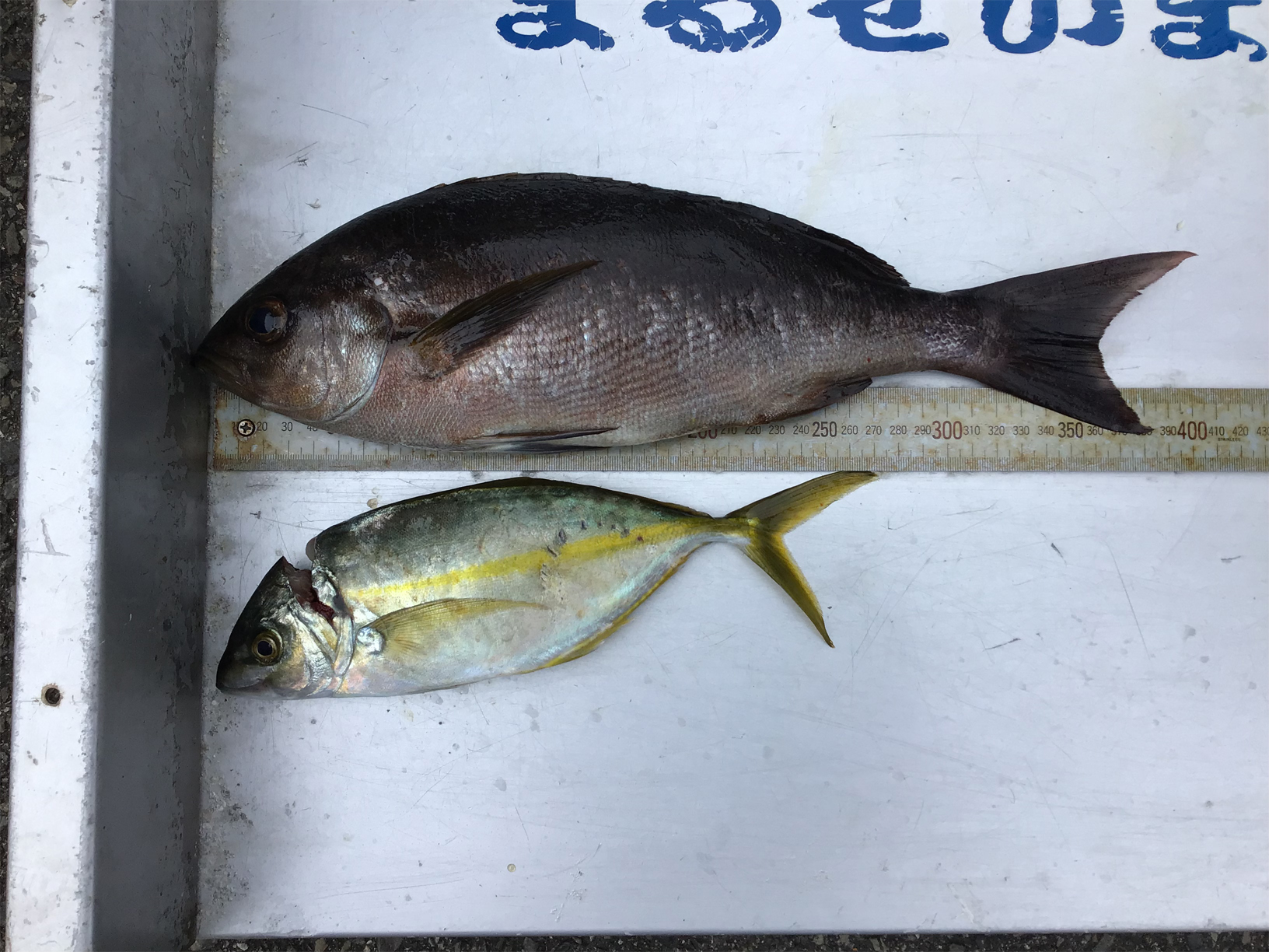 | | グレ 40p 1匹 他の方は 30pサイズを釣れてました | 釣 人 :羽曳野市 平本 修さん エ サ : オキアミ 釣 方 : フカセ釣り | |